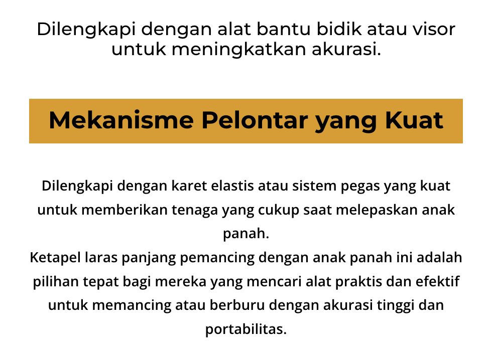 Laras panjang memberikan stabilitas ekstra dan akurasi yang lebih baik saat menembakkan anak panah, memastikan tembakan yang lebih tepat sasaran.